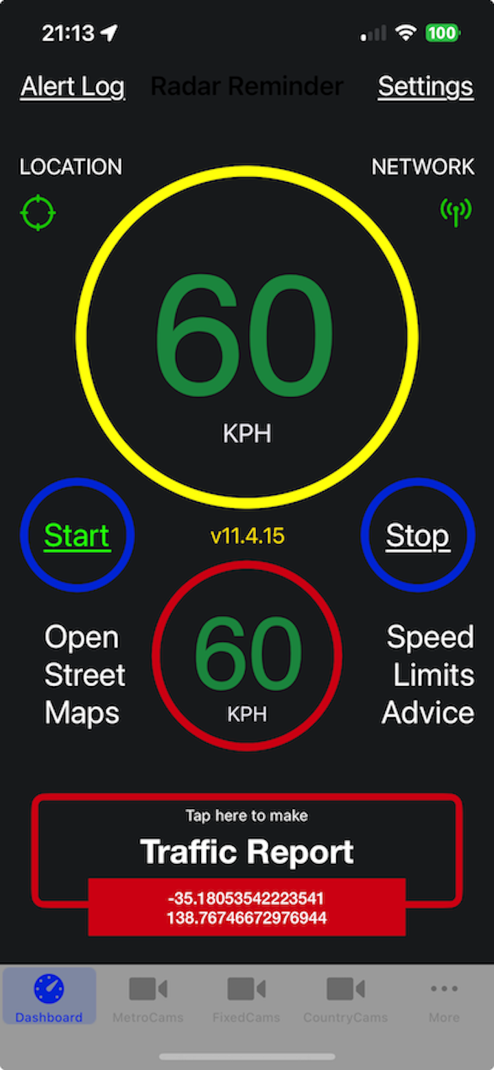 RR iOS Dashboard - GPS, Vehicle Speed, TrafficReport btn